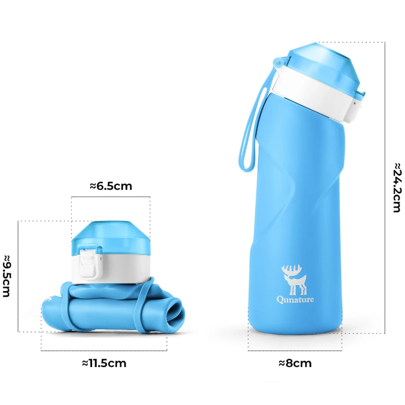 - Zwijana, kompaktowa konstrukcja – oszczędność miejsca – Bidon rozszerza się podczas napełnienia i składa po opróżnieniu do kompaktowych rozmiarów. Dzięki temu bez problemu mieści się w plecaku, torbie sportowej czy bagażu podręcznym, co czyni go idealnym rozwiązaniem w podróży i na outdoor.