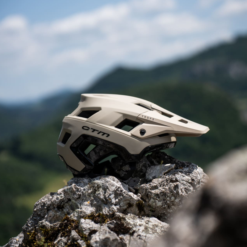 Kask rowerowy TROPS BEŻOWY MAT marki CTM to propozycja dla rowerzystów, którzy szukają niezawodnej ochrony podczas jazdy w wymagającym, górskim terenie. Zaprojektowany z myślą o agresywnej jeździe trailowej i enduro, łączy solidną konstrukcję, niską wagę i komfort noszenia. Dzięki podwójnej technologii double in-mold jest wyjątkowo wytrzymały, a jednocześnie lekki, co pozwala w pełni skupić się na jeździe i cieszyć się maksymalną swobodą ruchu.