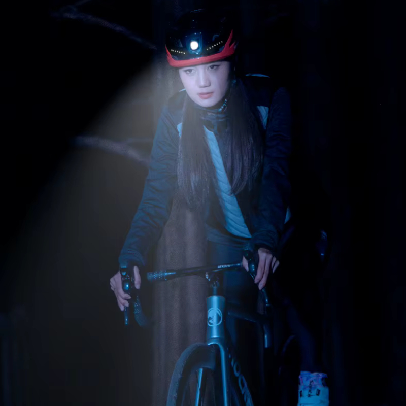 - Pełna widoczność dzięki czterostronnemu systemowi LED – Kask posiada przednie światło, boczne lampki sygnalizacyjne oraz tylne światło ostrzegawcze, dzięki czemu rowerzysta jest zauważalny z każdej strony. Lampki oferują trzy tryby świecenia – stały, pulsacyjny i migający – pozwalając dopasować pracę do warunków atmosferycznych i natężenia ruchu.