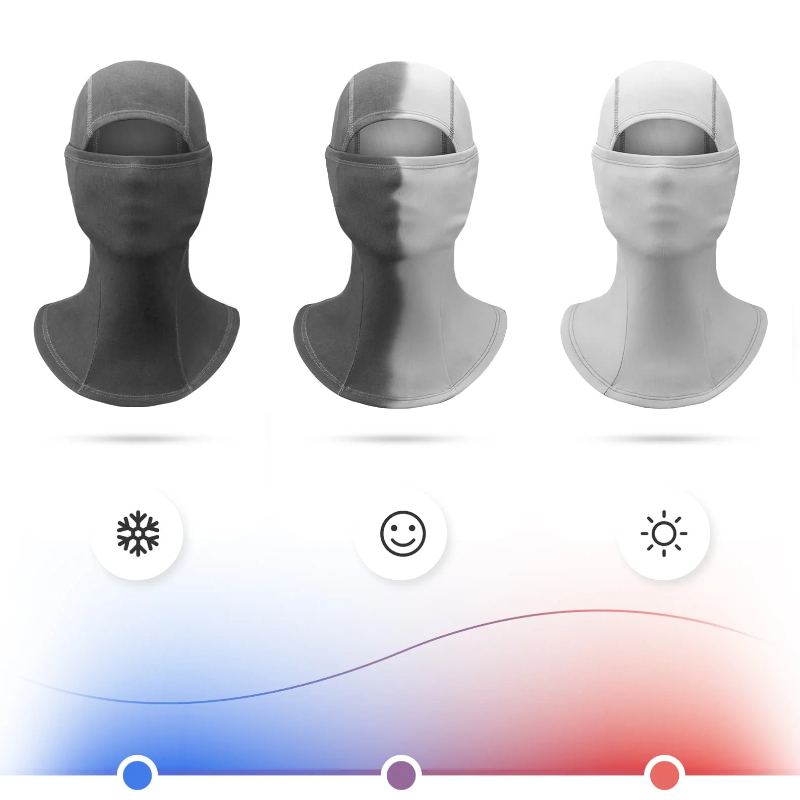 • Materiał termochromowy – dynamiczna zmiana koloru – Specjalna tkanina reaguje na temperaturę otoczenia i ciała, zmieniając barwę w zależności od warunków. Zapewnia unikalny, nowoczesny wygląd i wyróżnia kominiarkę podczas każdej aktywności.