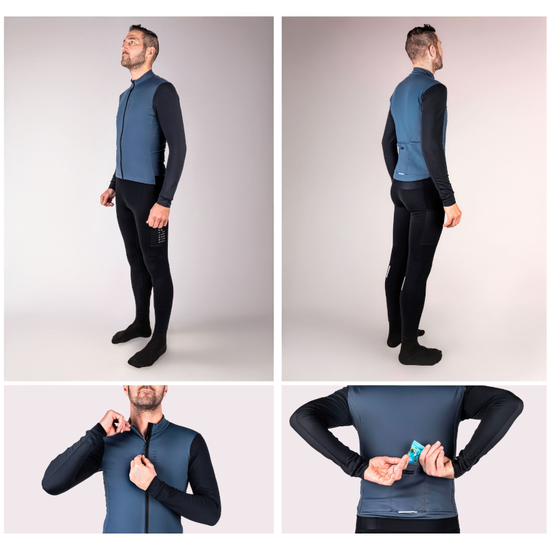 - Kontrastowe, dynamiczne rękawy – Nadają stylowy, profesjonalny wygląd i sprawiają, że koszulka wyróżnia się na trasie.