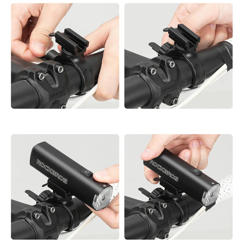 - Szybki montaż i demontaż – System quick-release pozwala zamocować lampkę bez użycia narzędzi na większości kierownic.