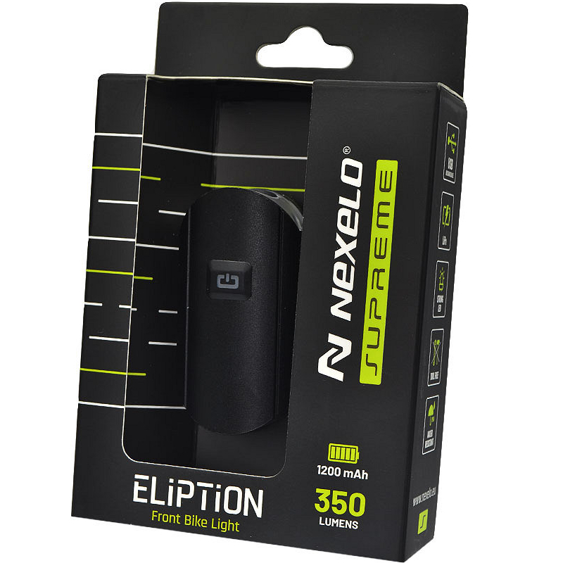 Lampka rowerowa przednia ELIPTION 350LM marki NEXELO to niezwykle wydajna przednia lampka rowerowa, z wbudowanym akumulatorem Li-Po 1200mAh, który ładowany jest bezpośrednio poprzez port USB-C.