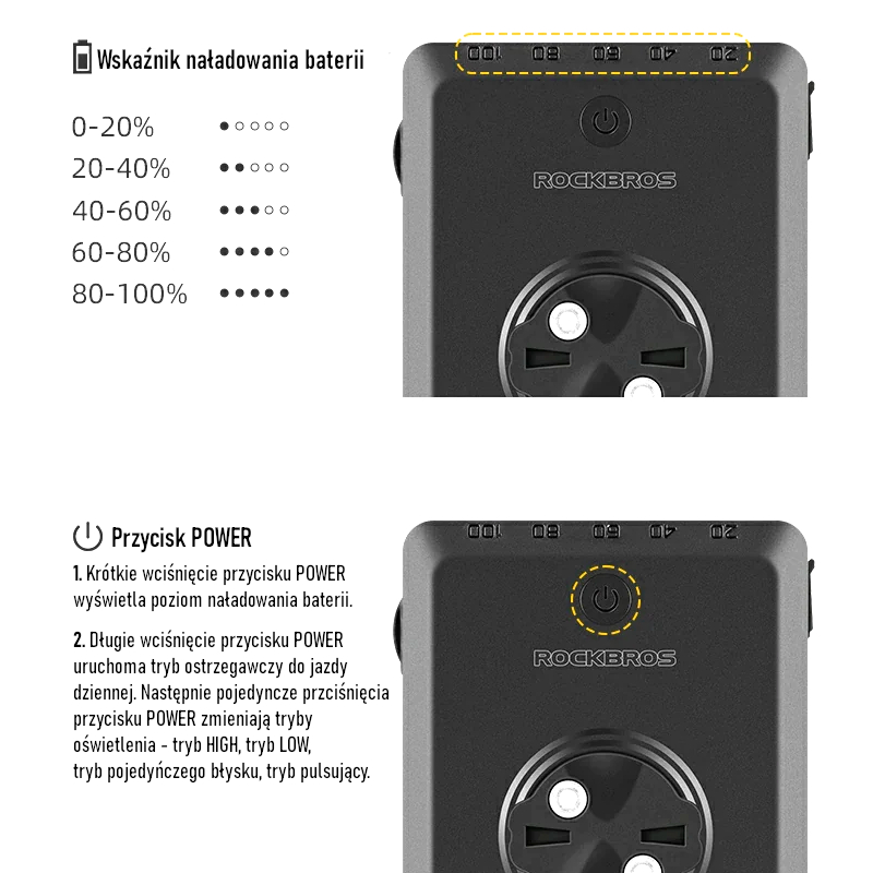 Możliwość ładowania przez port USB-C, innowacyjny design, pojemna bateria, prosty interfejs sprawiają że lampka ROCKBROS jest doskonałym wyborem dla każdego rowerzysty.