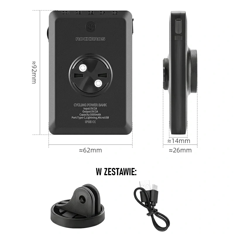 Oświetlenie wyposażone jest w akumulator o pojemności 5000mAh, który ładowany jest poprzez port USB-C. Wbudowany powerbank oraz kabel 3w1 sprawia, że lampka jest wielofunkcyjna – pozwala na ładowanie innych akcesoriów podczas przejażdżki rowerowej (nie potrzebujemy dodatkowego okablowania) oraz ostrzega innych uczestników o naszej obecności na drodze.