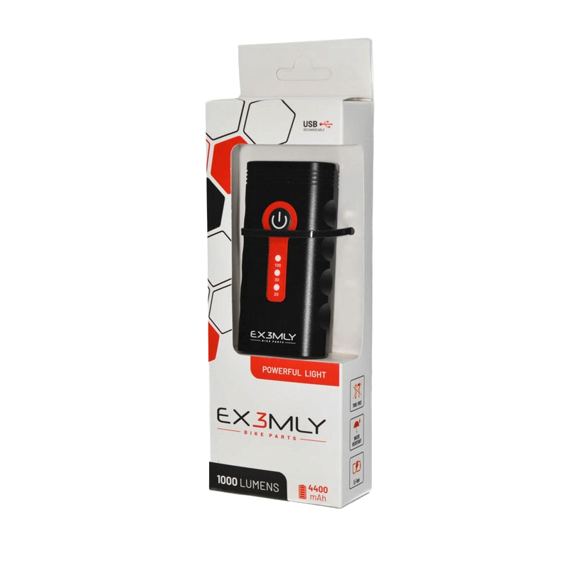 Lampka rowerowa X3M marki EX3MLY to niezwykle wydajna przednia lampa, z wbudowanym akumulatorem o pojemności 4400 mAh, który ładowany jest poprzez port micro USB. Lampka dzięki mocy świecenia 1000 lm, zapewnia równomierne rozprowadzenie światła oraz bardzo dobrą widoczność.