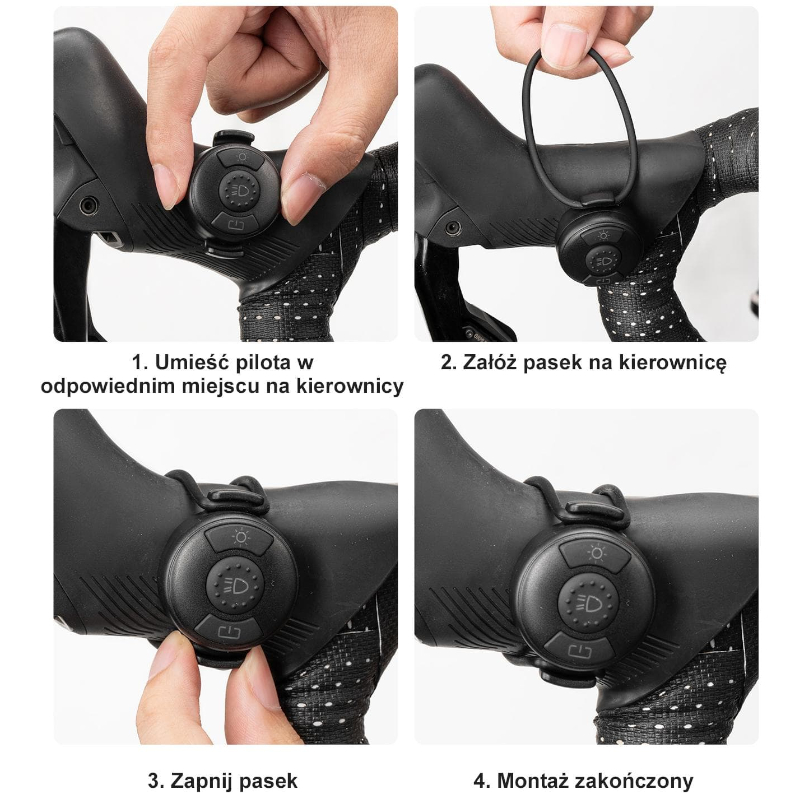 - Pilot bezprzewodowy – Steruj lampką bez odrywania rąk od kierownicy. Zasięg do 10 metrów pozwala na montaż w dowolnym miejscu.