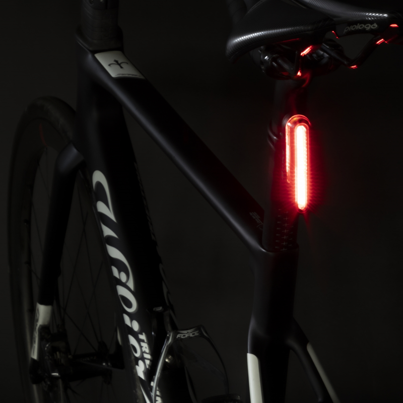 Lampka oferuje 5 trybów świecenia (2 stałe + 3 migające), co pozwala dopasować ją do stylu jazdy i warunków na drodze. Jej lekka konstrukcja (tylko 36 g z uchwytem) oraz uniwersalny silikonowy pasek montażowy umożliwiają łatwe i szybkie zamocowanie na większości okrągłych sztyc podsiodłowych.
