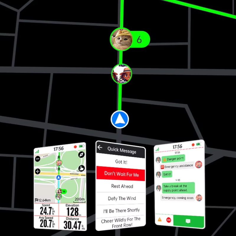 - Jazda grupowa i komunikacja w czasie rzeczywistym – Funkcje dedykowane jeździe w grupie umożliwiają śledzenie pozycji innych uczestników oraz wymianę informacji podczas wspólnego treningu. Idealne rozwiązanie dla drużyn, klubów i pasjonatów wspólnych wypadów.