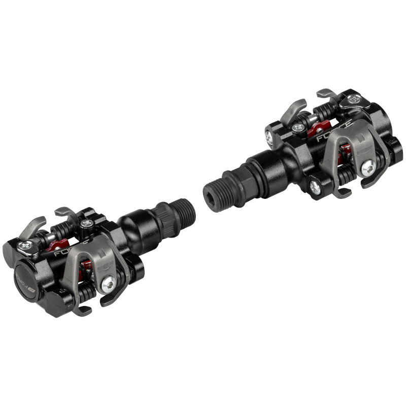 Dzięki systemowi FPC (FORCE Pedal Click), pedały są w pełni kompatybilne z blokami Shimano SPD SM-SH51 i SH56, co oznacza pełną swobodę w wyborze obuwia oraz bezproblemową integrację ze sprawdzonymi rozwiązaniami. Aluminiowy korpus jest lekki, ale jednocześnie odporny na uderzenia, a stalowa oś Cr-Mo i kulkowe łożyska zapewniają trwałość i płynność działania nawet przy intensywnej eksploatacji.