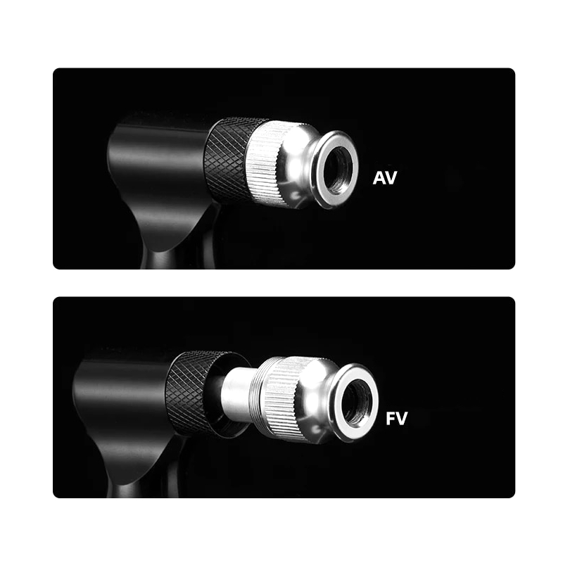Posiada głowicę kompatybilną z wentylami typu Presta i Schrader.