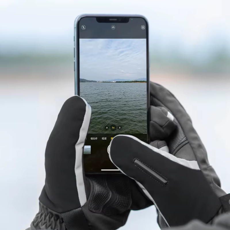 - Obsługa ekranów dotykowych – pełna funkcjonalność – Opuszki palca wskazującego i kciuka wykonano z przewodzącego materiału, umożliwiającego obsługę ekranów dotykowych bez zdejmowania rękawic. Pozwala to wygodnie korzystać ze smartfona, nawigacji GPS czy odbierać połączenia nawet w niskich temperaturach.