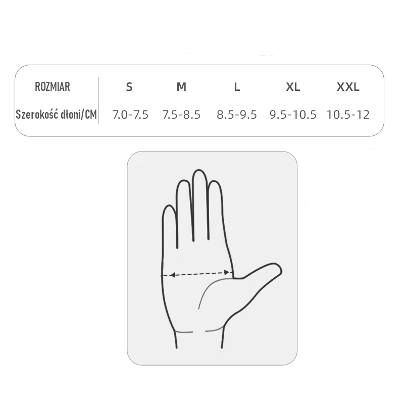 | ROZMIAR | SZEROKOŚĆ DŁONI (CM) |