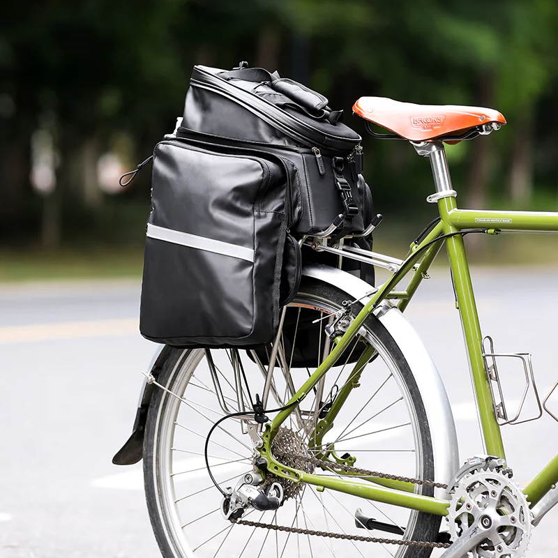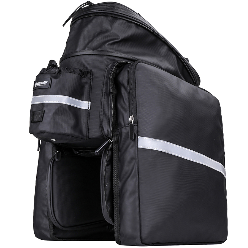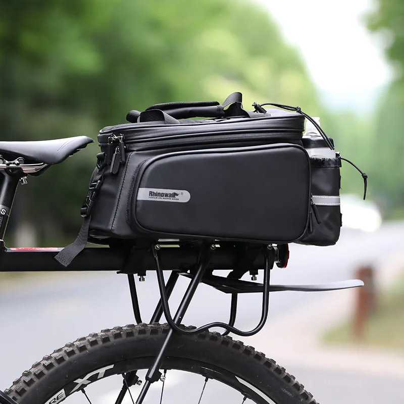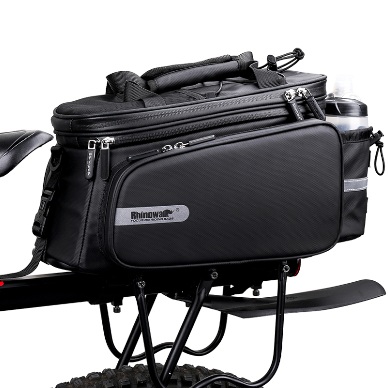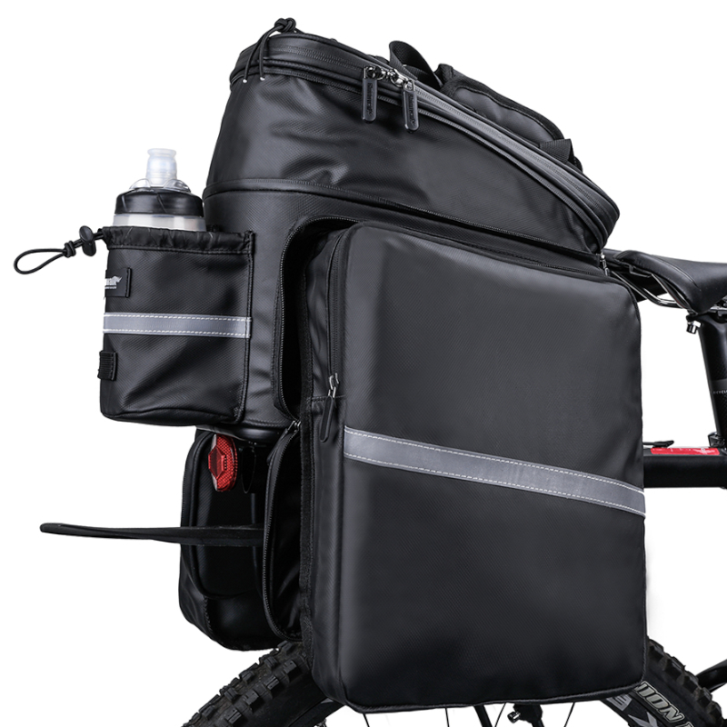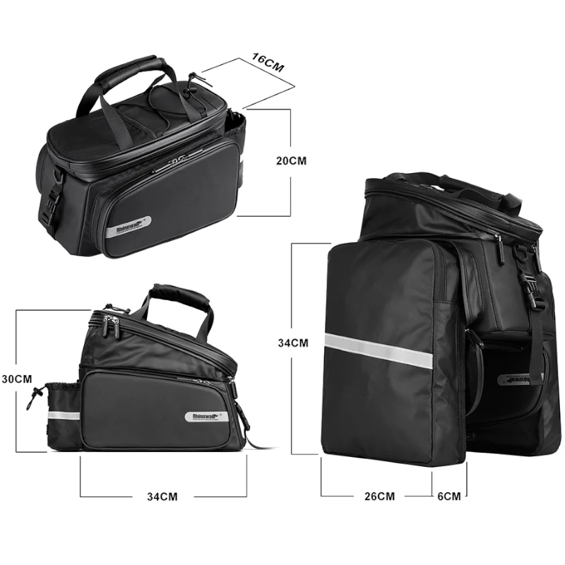 Sakwa rowerowa na bagażnik RK6100BK marki RHINOWALK to przestronna rozkładana torba mocowana do bagażnika, odpowiednia na dłuższe wędrówki, ale także do codziennego użytku dzięki swojej wszechstronności.