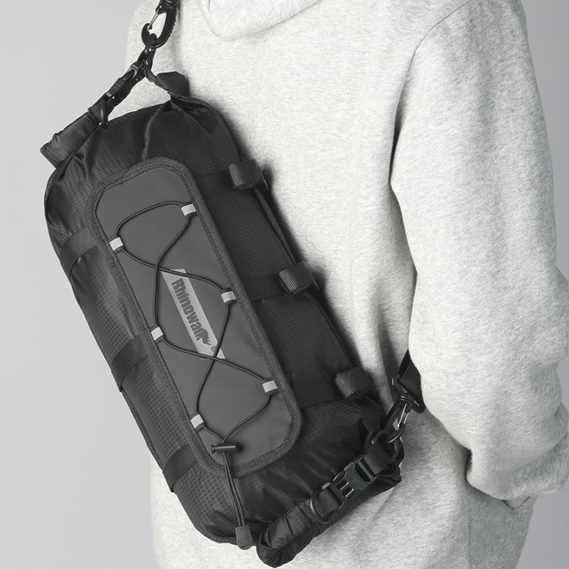 - Regulowana pojemność do 12 litrów – Dzięki konstrukcji typu roll-top możesz swobodnie dostosować objętość sakwy do swoich potrzeb – od minimalistycznego pakowania po maksymalne wykorzystanie przestrzeni.