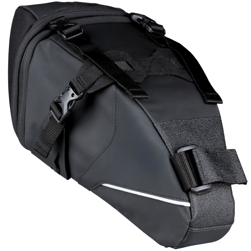 Torba została zaprojektowana tak, aby maksymalnie ułatwiać użytkowanie. Stabilne mocowanie na regulowane pasy z klamrami i rzepami zapewnia pewne trzymanie nawet w trudnym terenie, a dzięki przemyślanej konstrukcji sakwa świetnie zachowuje swój kształt. Otwierana na zamek poprowadzony wokół obwodu gwarantuje łatwy dostęp do zawartości w każdej sytuacji. Dodatkowym atutem jest uchwyt do tylnej lampki, który zwiększa bezpieczeństwo jazdy po zmroku.