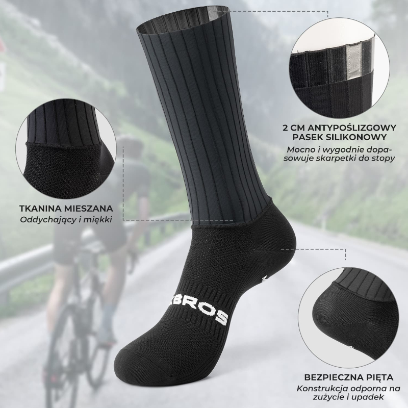 Skarpetki rowerowe kompresyjne RB9006 WHGD marki ROCKBROS to zaawansowany element odzieży sportowej stworzony z myślą o maksymalnej wydajności, komforcie oraz aerodynamice podczas jazdy.