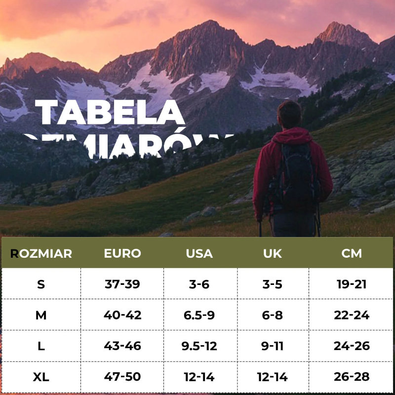 - Rozmiar: S / 37 – 39 EUR; M / 40 – 42 EUR; L / 43 – 46 EUR; XL / 47 – 50 EUR