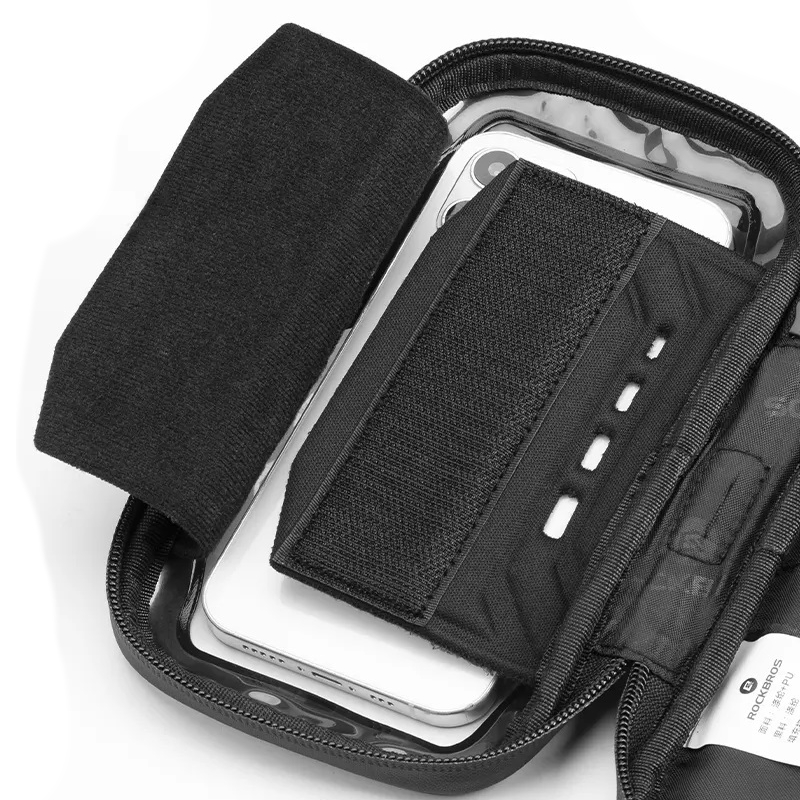 Górna część torebki posiada miejsce na telefon z przezroczystym oknem wykonanym z tworzywa PVC, które pozwala na sterowanie telefonem z ekranem dotykowym bez konieczności wyjmowania.