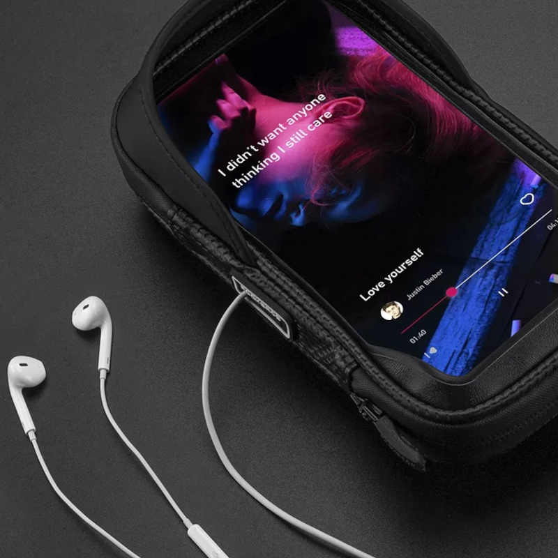 Torebka posiada otwór na słuchawki, aby słuchać muzyki bez konieczności trzymania telefonu. Przednia osłona przeciwsłoneczna ułatwia widoczność ekranu telefonu komórkowego przy świecącym słońcu.