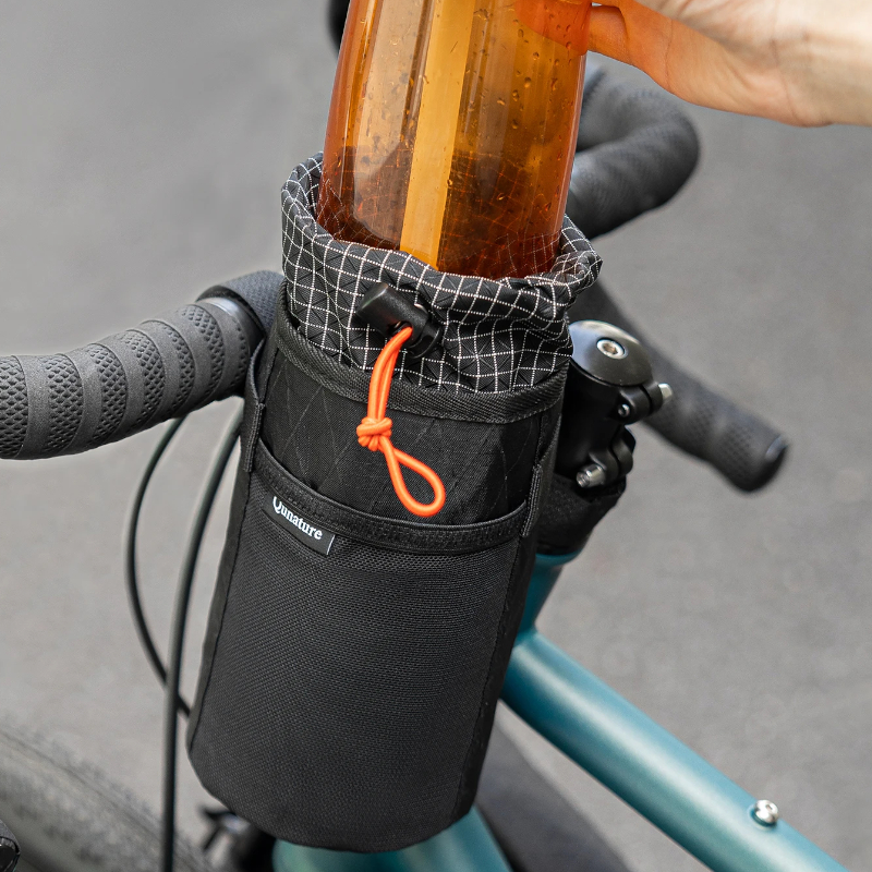 Uchwyt ma pojemność 1L, która jest wystarczająco duża, aby przechowywać butelki/bidony z wodą, z boku znajduje się praktyczna siateczkowa kieszonka do przechowywania narzędzi, kluczy czy telefonu.