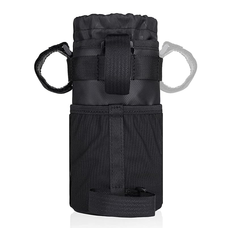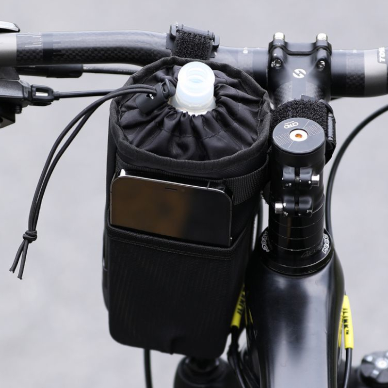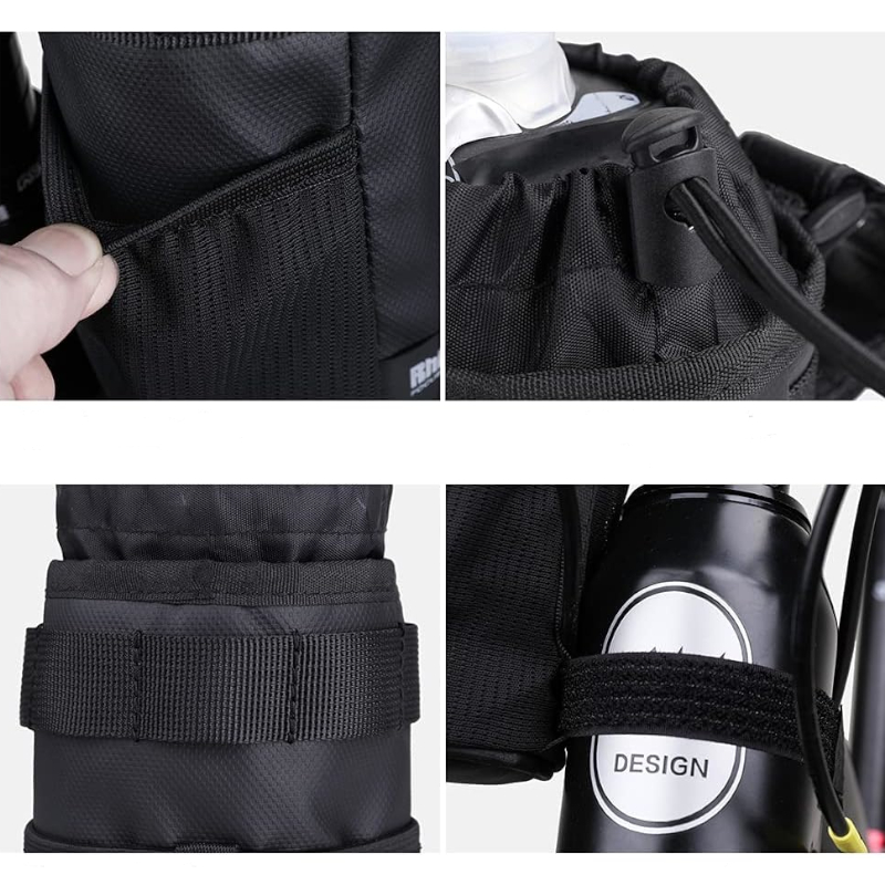 Uchwyt ma pojemność 1L, która jest wystarczająco duża, aby przechowywać butelki/bidony z wodą (maksymalna średnica butelki/bidonu to 9 cm), po bokach znajdują się praktyczne siateczkowe kieszonki do przechowywania narzędzi, kluczy czy telefonu.