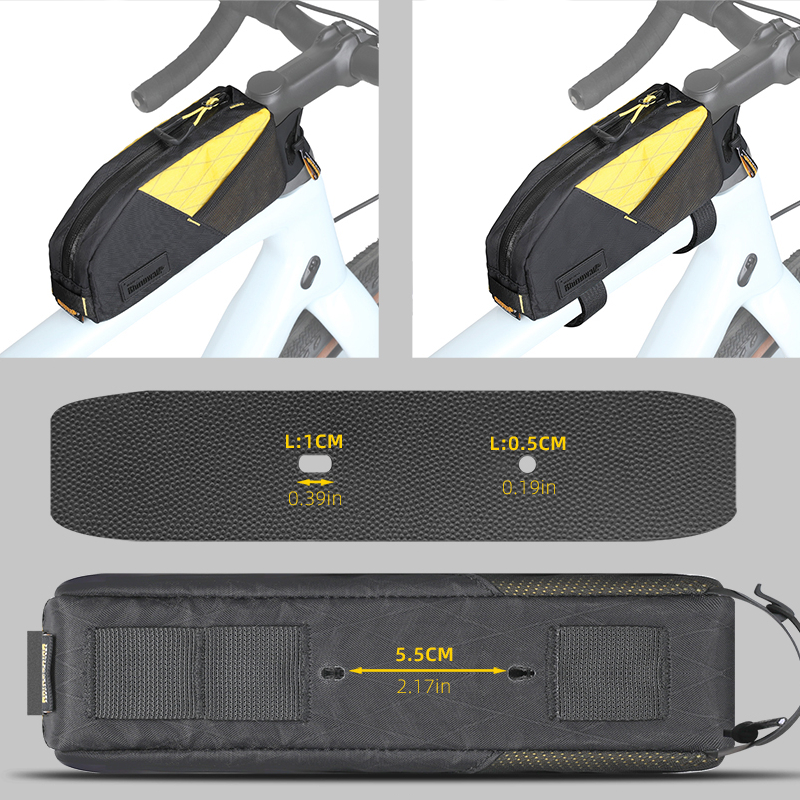- Kompaktowa, lekka i idealnie dopasowana do ramy – Dzięki pojemności 1,2 litra torba jest wystarczająco przestronna na niezbędne rzeczy, a przy tym na tyle smukła, by nie przeszkadzać podczas pedałowania. Jej kształt i rozmiar sprawiają, że idealnie pasuje do większości ram rowerowych – od MTB po gravel i rowery miejskie.
