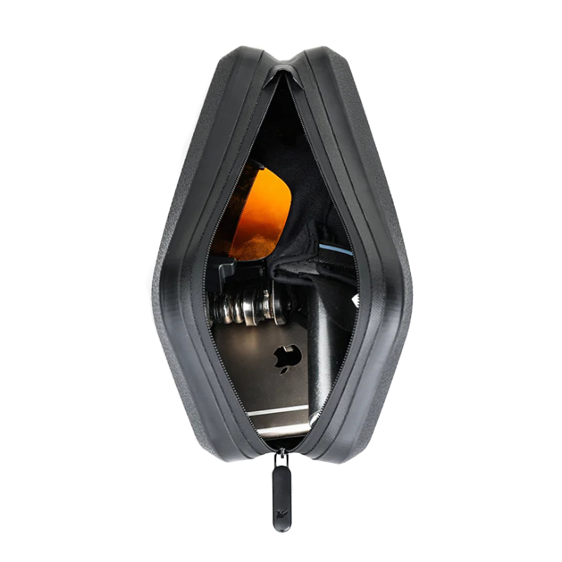 - Idealne dopasowanie – Smukła konstrukcja o szerokości zaledwie 2,8 cala (ok. 7 cm) nie koliduje z pedałowaniem – torba nie ociera o nogi i nie przeszkadza podczas jazdy. Kształt idealnie dopasowuje się do rury górnej większości ram rowerowych.