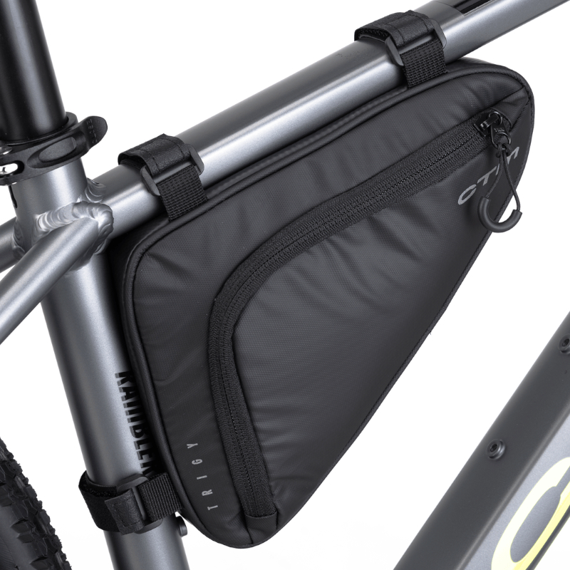 Torba rowerowa trójkątna na ramę TRIGY marki CTM to klasyczna trójkątna torba montowana pod ramą, która łączy prostotę formy, nowoczesne materiały i przemyślaną funkcjonalność. Zaprojektowana z myślą o wygodnym przechowywaniu najpotrzebniejszych przedmiotów, idealnie sprawdzi się zarówno w codziennej jeździe, jak i podczas dłuższych wypraw.