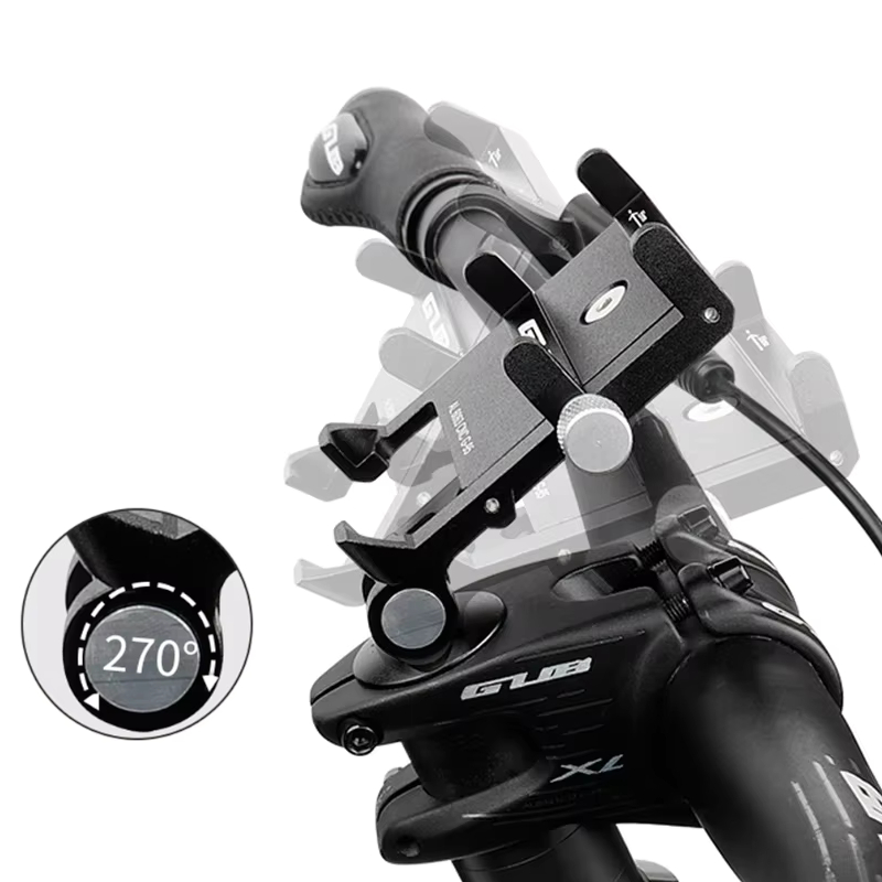 Uchwyt wykonano z obrabianego CNC stopu aluminium, co gwarantuje wysoką wytrzymałość, odporność na drgania oraz długą żywotność nawet przy intensywnym użytkowaniu. Konstrukcja z wydłużonymi o 15 mm ramionami pewnie obejmuje telefon, skutecznie zabezpieczając go przed przesuwaniem się i wypadnięciem – także na nierównych nawierzchniach. Dzięki szerokiemu zakresowi regulacji uchwyt jest kompatybilny z większością smartfonów dostępnych na rynku.