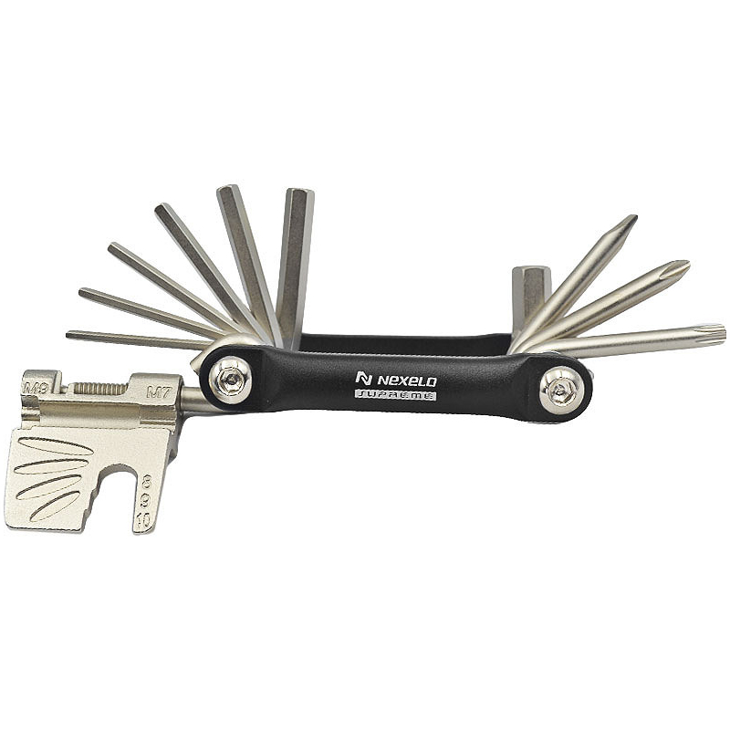 Komplet zawiera 18 najważniejszych narzędzi służących do regulacji roweru. Całość została zamknięta w kompaktowej formie scyzoryka, po złożeniu mieści się w dłoni – jest łatwy do przechowywania np. kieszeni lub w sakwie rowerowej.