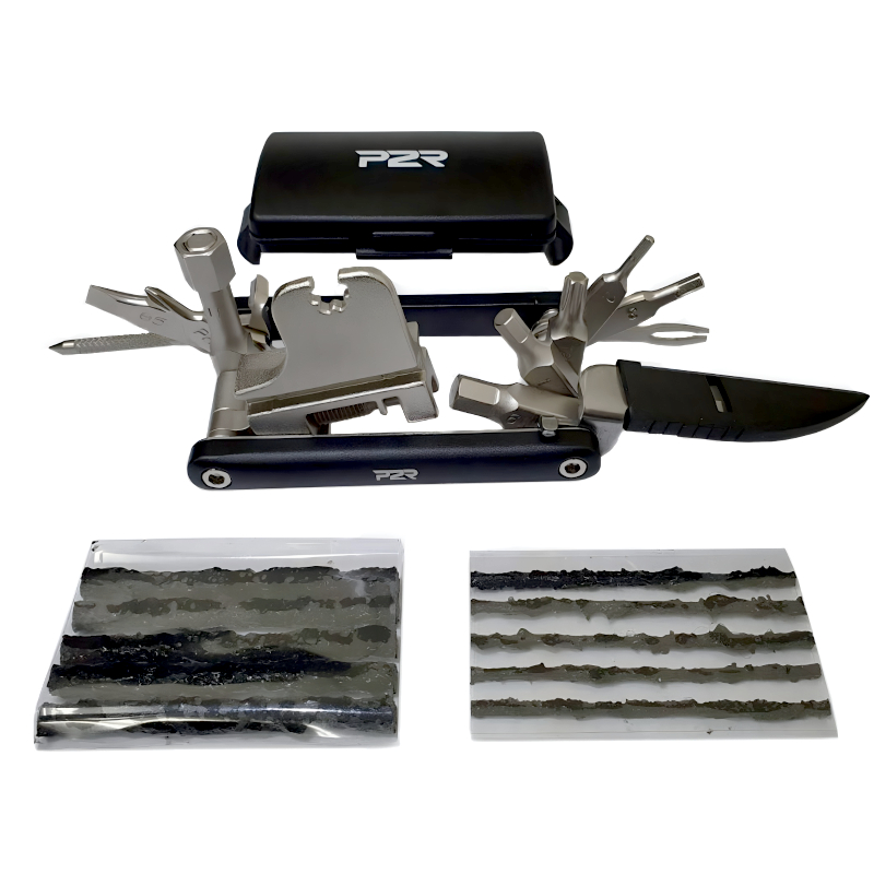 - Funkcja naprawy opon bezdętkowych (TUBELESS) – Multitool wyposażony jest w pilnik, aplikator oraz pojemnik zawierający sznurki naprawcze (5 szt. 1,5 mm + 5 szt. 3,5 mm). To nieoceniona pomoc w szybkim załataniu przebicia bez potrzeby zdejmowania opony.